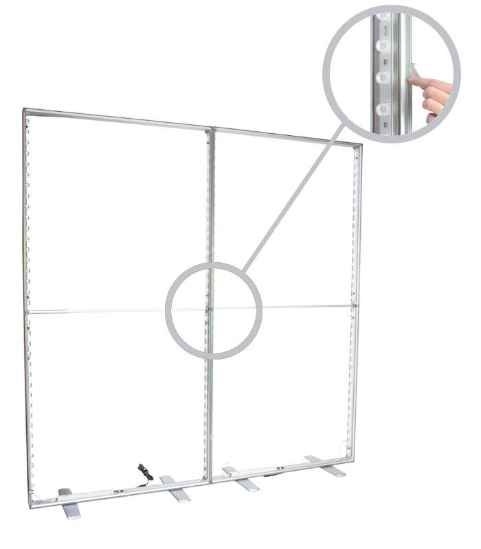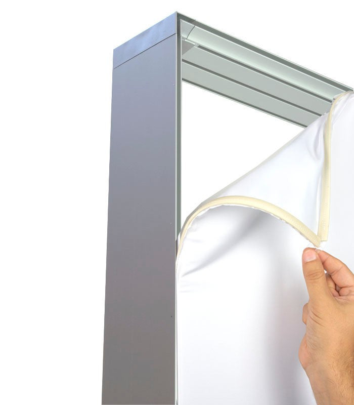 Caja de luz - Rejecta es expositor un publicitario de doble cara compuesto por un kit de perfiles de aluminio de 80mm con luz led incorporada. La estructura es fácil y rápida de montar, sin necesidad de herramientas. La gráfica para este soporte se debe imprimir en textil. Todo el perímetro está cosido con una tira de silicona, que consigue que al instalarse en el marco la tela quede tensa y muestre un acabado perfecto. Ideal para tiendas de moda, escaparates, teatros, cines, eventos, ferias, etc.