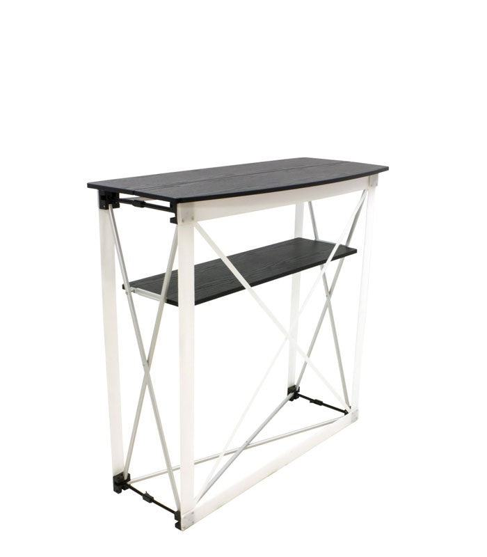 El Mostrador Perth es ideal para la promoción en diferentes puntos de ventas. El mostrador Atlanta viene con 2 estantes de madera, uno de ellos interior, por lo que las tarjetas de negocio y folletos se pueden guardar para que la exhibición siempre parezca limpia y organizada. Este mostrador para ferias es fácil y rápido de montar, no se requieren herramientas. La estructura del mostrador es plegable y la gráfica se adhiere con un sistema de velcro. Además, se puede desmontar totalmente e incluye bolsa de transporte. Este soporte publicitario es excelente para ferias y eventos promocionales en tiendas o presentaciones comerciales.