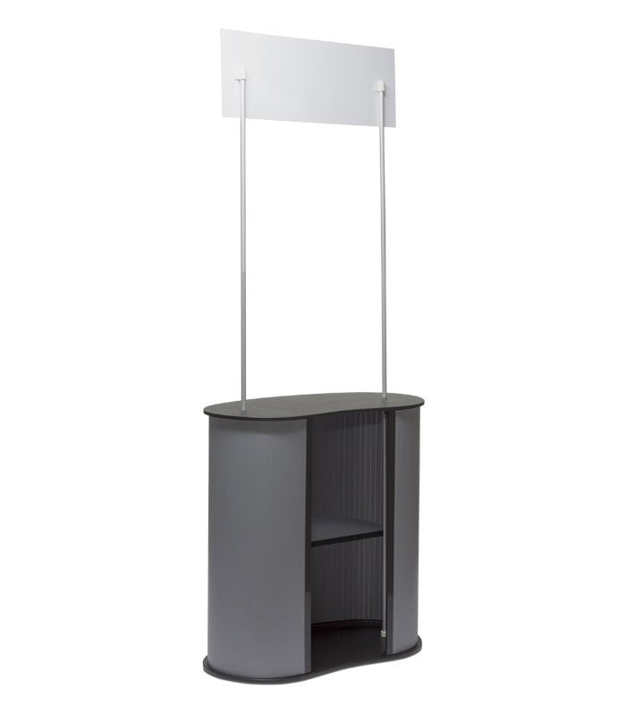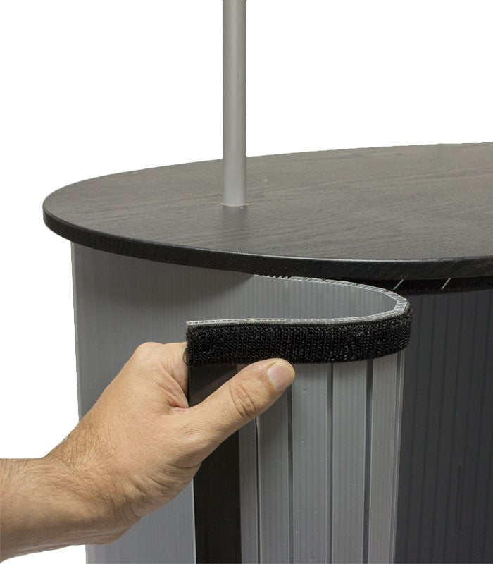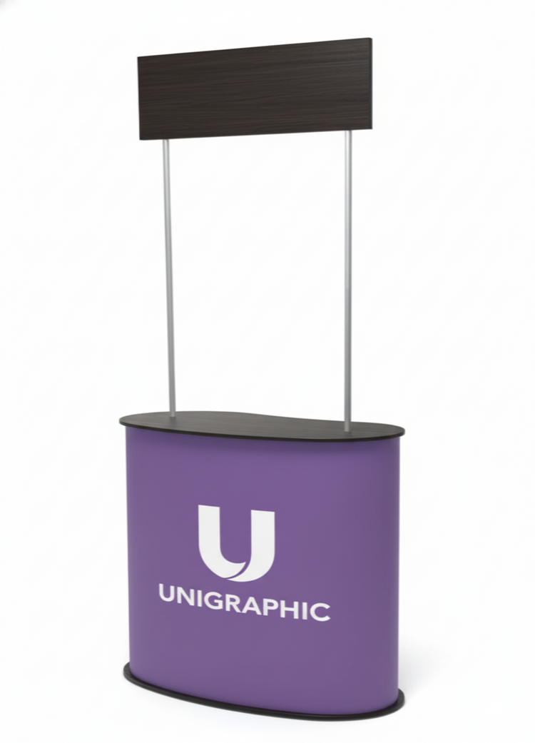 El Mostrador Sydney es un mostrador de gran calidad fabricado con materiales resistentes como la madera y el plástico. Dispone de dos zonas personalizables, una cartela superior y la estructura del mostrador. Su instalación es muy sencilla ya que se ajusta mediante un mecanismo de velcro. Es un mostrador portátil, ya que incluye una bolsa de transporte y puede desmontarse de forma fácil y rápida. Este mostrador para ferias incluye un estante interior, dónde guardar folletos o muestras de producto. Se trata de un mostrador plegable perfecto para acciones de comunicación temporales como ferias comerciales, campañas promocionales, degustaciones de productos…