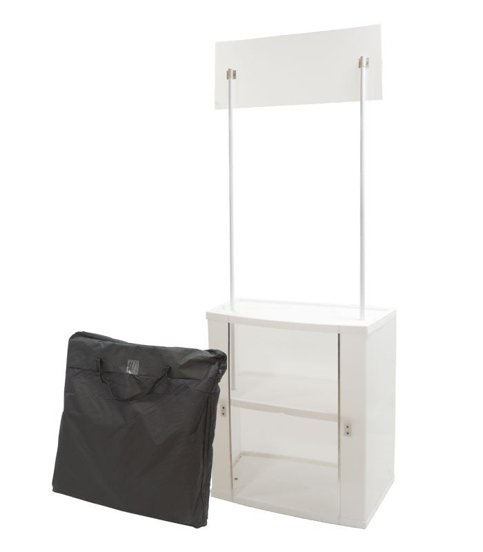 El Mostrador Melbourne es uno de los mostradores más económicos dentro de su gama. Es un mostrador barato, pero que reúne todas las características esenciales para cumplir con su función informativa, con una excelente relación calidad-precio. Es un mostrador portátil, ya que incluye una bolsa de transporte y puede desmontarse de forma fácil y rápida. Este mostrador para ferias incluye un estante interior, dónde guardar folletos o muestras de producto. Se trata de un mostrador plegable perfecto para acciones de comunicación temporales como ferias comerciales, campañas promocionales, degustaciones de productos…