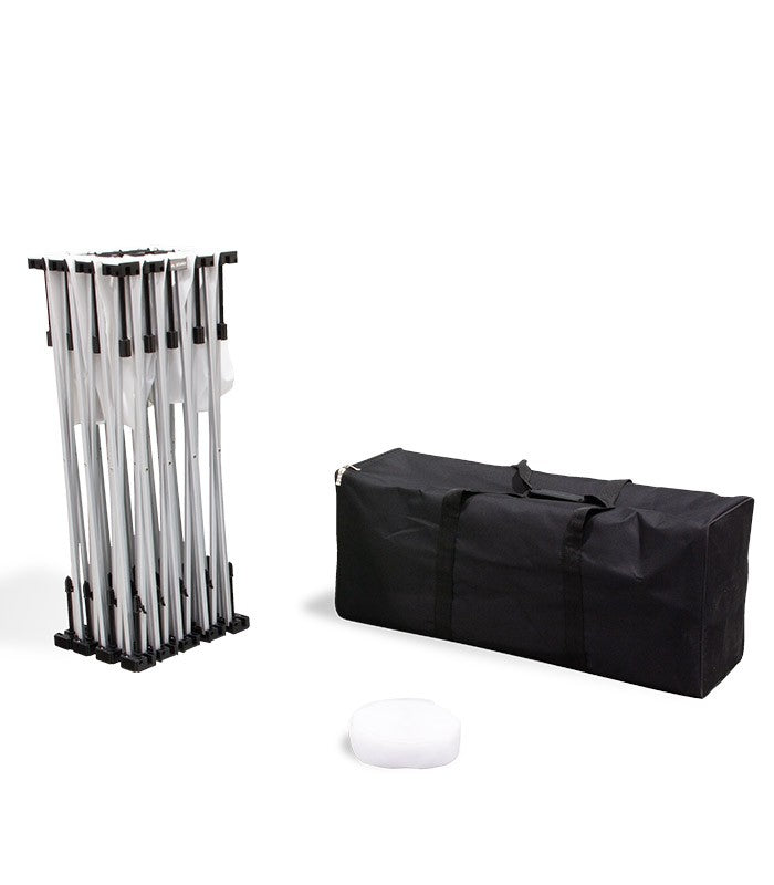 El Pop-Up Textil es un soporte publicitario de gran calidad que ofrece la posibilidad de fijar la gráfica tanto en la parte frontal como en los laterales. También se puede fijar la gráfica a doble cara, pero habría que colocar un velcro extra en la parte trasera de la estructura. La gráfica es intercambiable, gracias a su sistema de instalación con velcro, lo que le aporta mayor versatilidad y funcionalidad.
